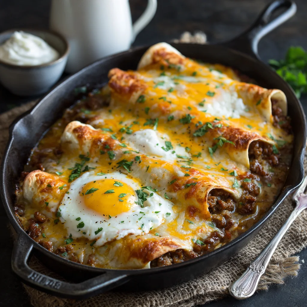 . These Southern Beef Sausage Gravy Breakfast Enchiladas are everything a perfect morning needs warm, creamy, cheesy, and packed with love. Whether it’s brunch for the family or a cozy breakfast for two, this dish delivers pure joy on every plate.