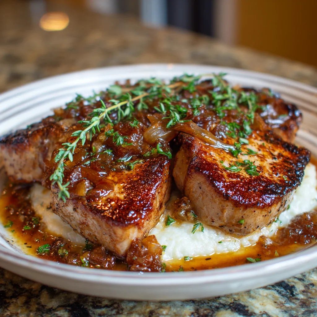 Remove chops to plates. Spoon gravy over top. Serve with mashed potatoes or rice to soak up the sauce.