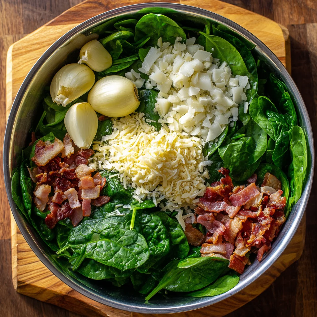 We’ve taken all the best parts of a classic hot spinach dip—the creamy melted cheese, the vibrant spinach—and elevated it to new heights. The bacon isn’t just a garnish; its rendered fat is used to sauté the garlic, infusing every bite with incredible depth. This dip is the quintessential appetizer for game nights, holiday gatherings, or simply a cozy night in.
