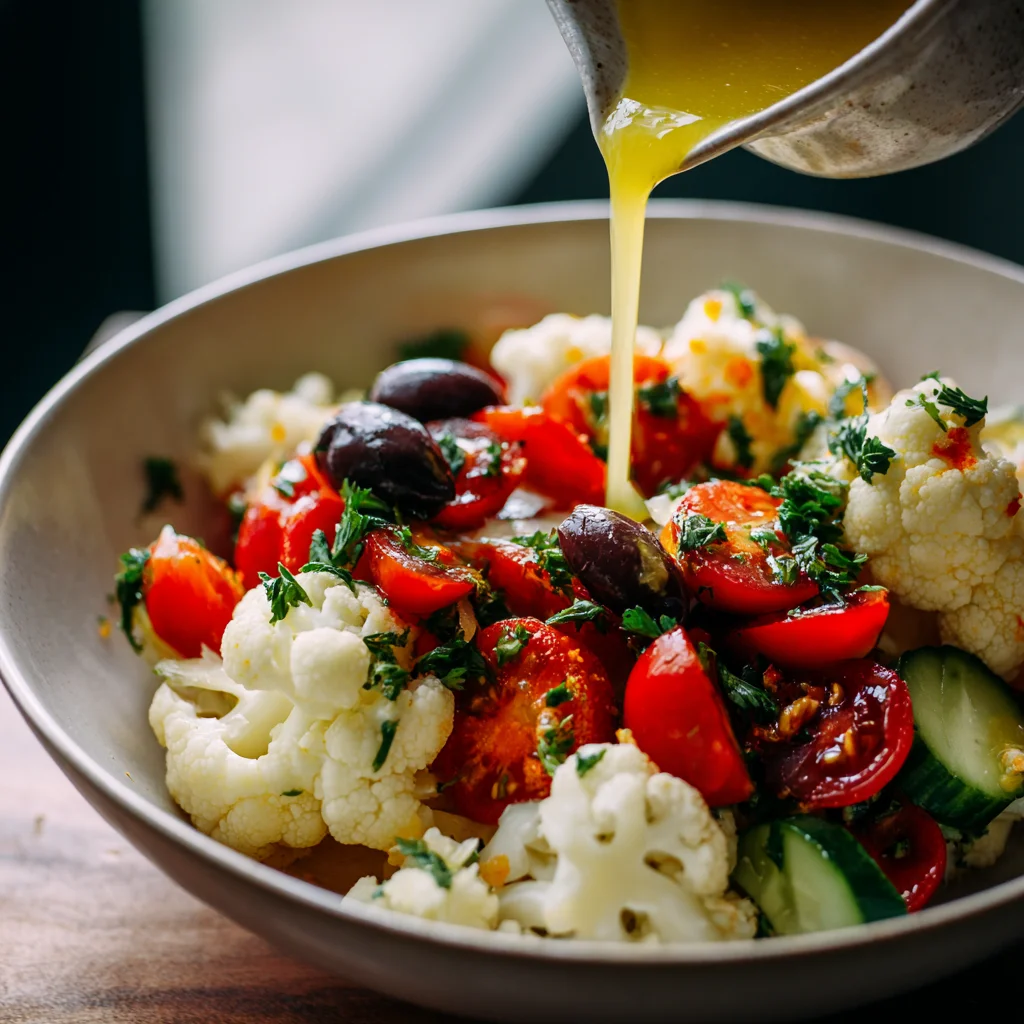 This Mediterranean Cauliflower Salad is a refreshing, nutrient-packed dish perfect as a light meal or a versatile side salad. Made with tender steamed cauliflower, fresh vegetables, olives, herbs, and a bright lemon-olive oil dressing, it delivers classic Mediterranean cuisine flavors in every bite.