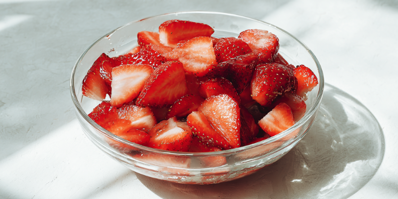 Combine sliced strawberries, sugar, and lemon juice in a bowl. Toss gently and let them sit. In 10 minutes, they’ll release a syrupy juice that tastes like liquid jam.