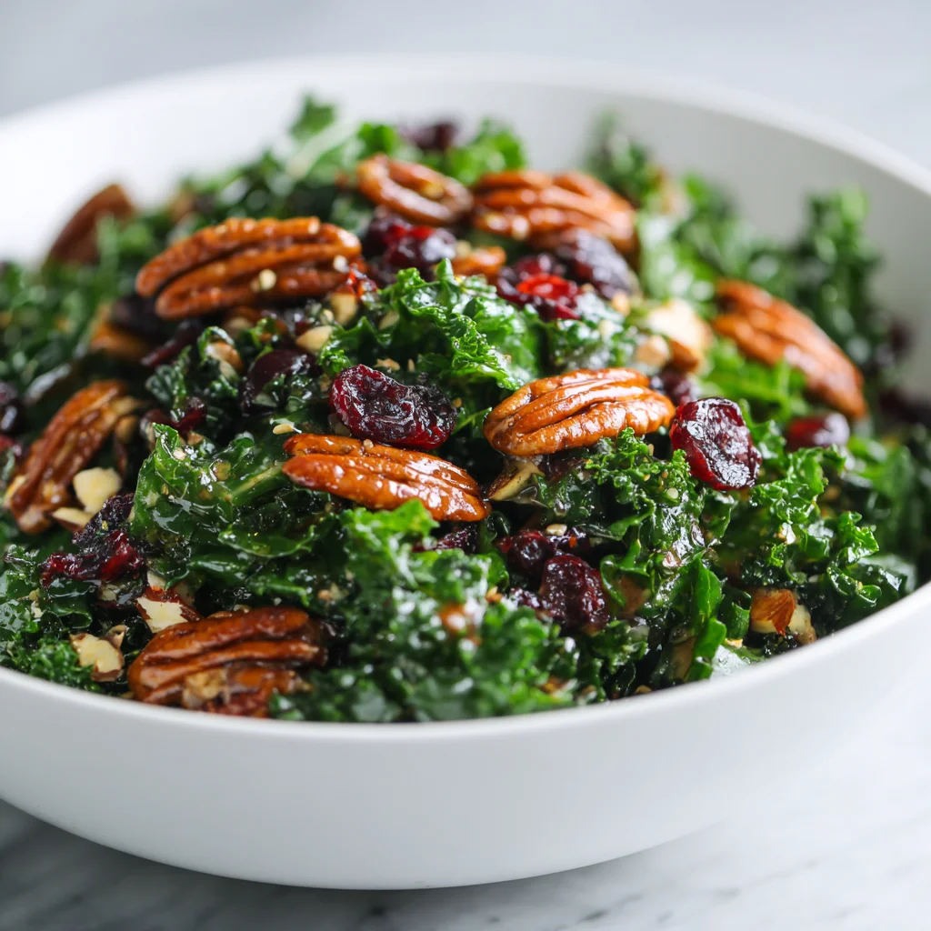 This is not your average, timid side salad. This salad is bold, beautiful, and absolutely bursting with the essential flavors of the season. We start with hearty, nutrient-dense kale, which stands up beautifully to a dressing without wilting. We add sweet, crunchy elements like candied pecans and juicy apple slices. But the real showstopper? The homemade Cranberry-Cinnamon Vinaigrette.